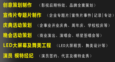 多年的行業(yè)淬練、豐富的制作經(jīng)驗使我們建立起一支專業(yè)、高效、富有創(chuàng)造力的團隊——國家級的導演,為全片制作指點乾坤;睿智的策劃撰稿,妙筆點亮全片靈魂;成熟的執(zhí)行導演,拍攝中統(tǒng)籌畫面效果;老到的攝影師,嫻熟地記錄各式場景;還有新銳的后期編導,用靈感為作品增色;充滿熱情的剪輯師、動畫包裝師,讓畫面效果更為精彩繽紛;才華橫溢的音樂制作人,帶來渲染氣勢的合片旋律……不同的工種通力合作,眾志成城,為一個完美影視作品的誕生齊心協(xié)力。